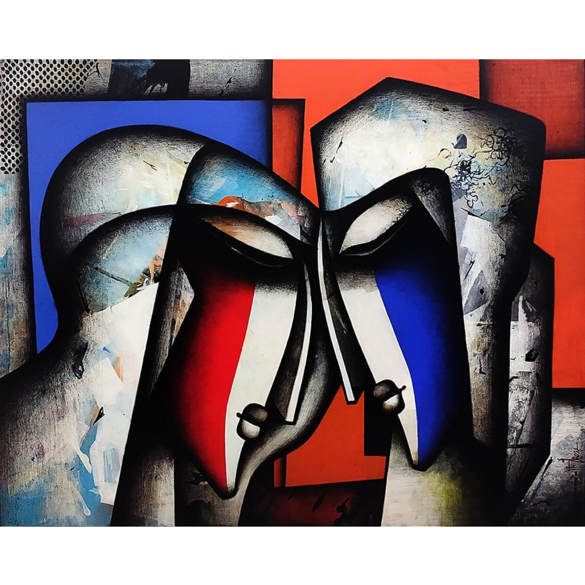 Jagannath Paul has graduated from the Government College of Arts & Crafts, Kolkata.He has won many prestigious awards. He is known for his charcoals on paper or canvas. His works bring out the drama of black and white by introducing solid blocks of paint, which are restricted to reds, yellows and orange. The contrast sets the mood of the work, highlighting the character that he paints.