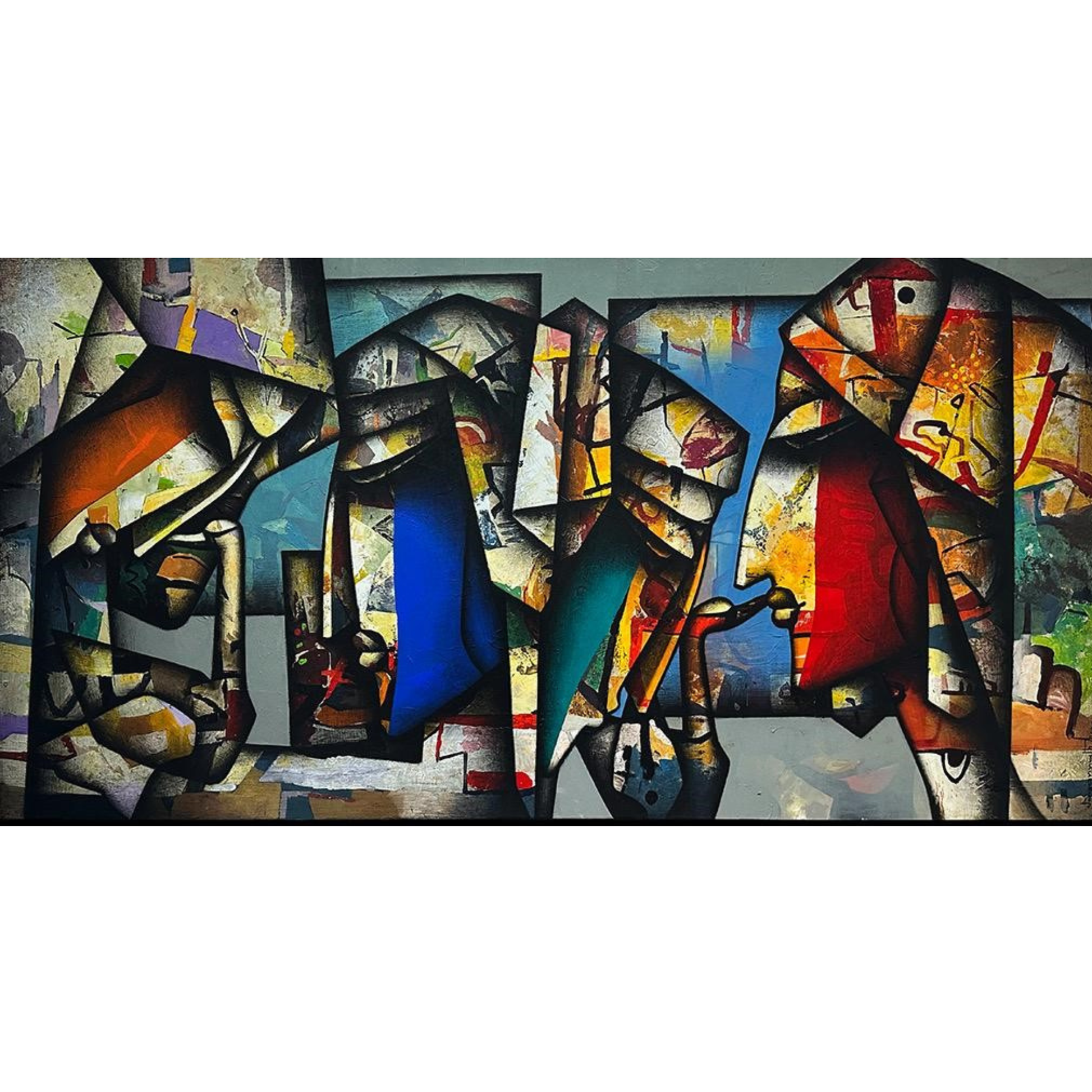 Jagannath Paul has graduated from the Government College of Arts & Crafts, Kolkata.He has won many prestigious awards. He is known for his charcoals on paper or canvas. His works bring out the drama of black and white by introducing solid blocks of paint, which are restricted to reds, yellows and orange. The contrast sets the mood of the work, highlighting the character that he paints.
