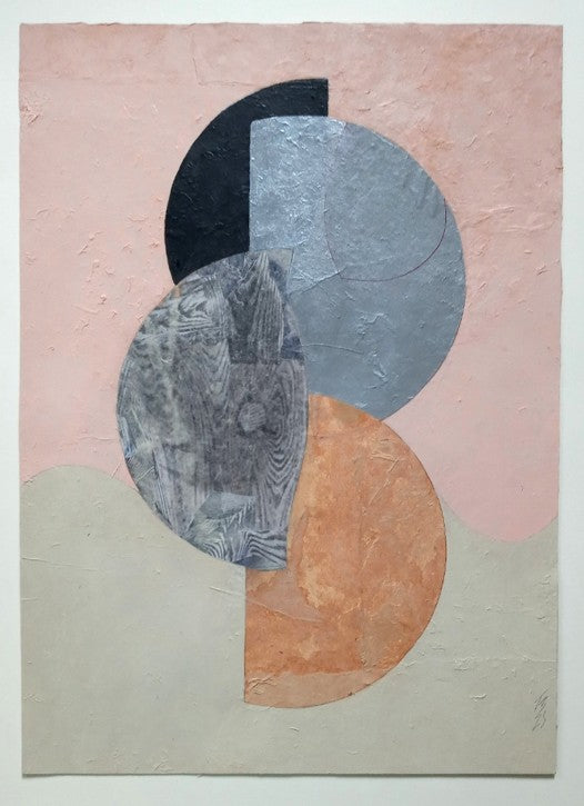 The shapes of his paintings became irregular, growing organically, balancing the collage of finely painted forms and the rough edges of torn pieces from another painting done at another time. These are paintings in time.